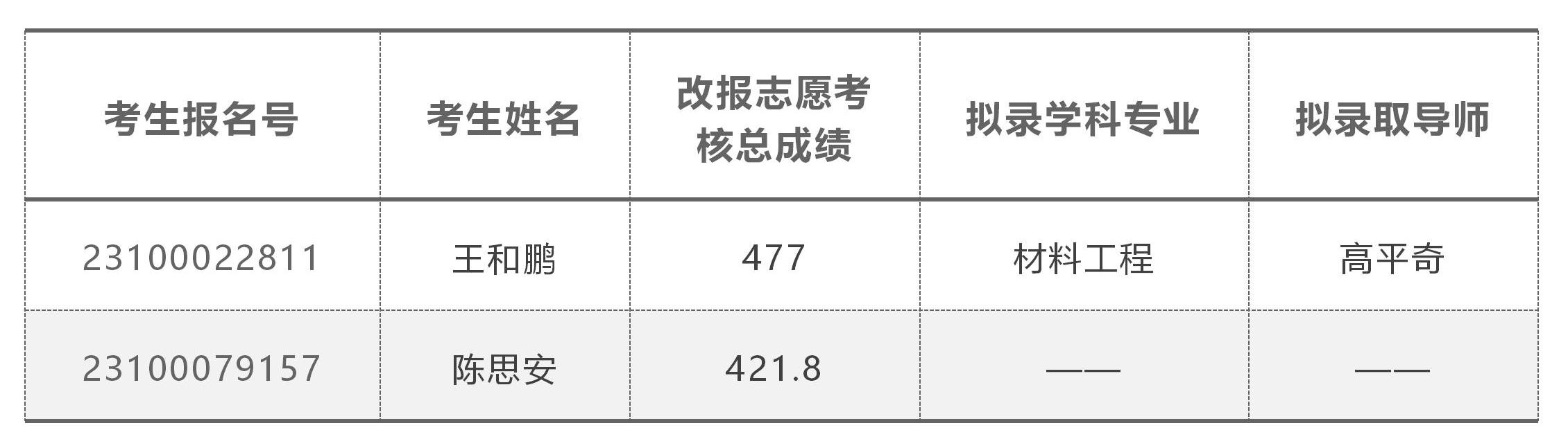 威廉希尔WilliamHill官方网站料学院2023年以“申请-考核”制招收博士研究生改报志愿及递补拟录取名单公示