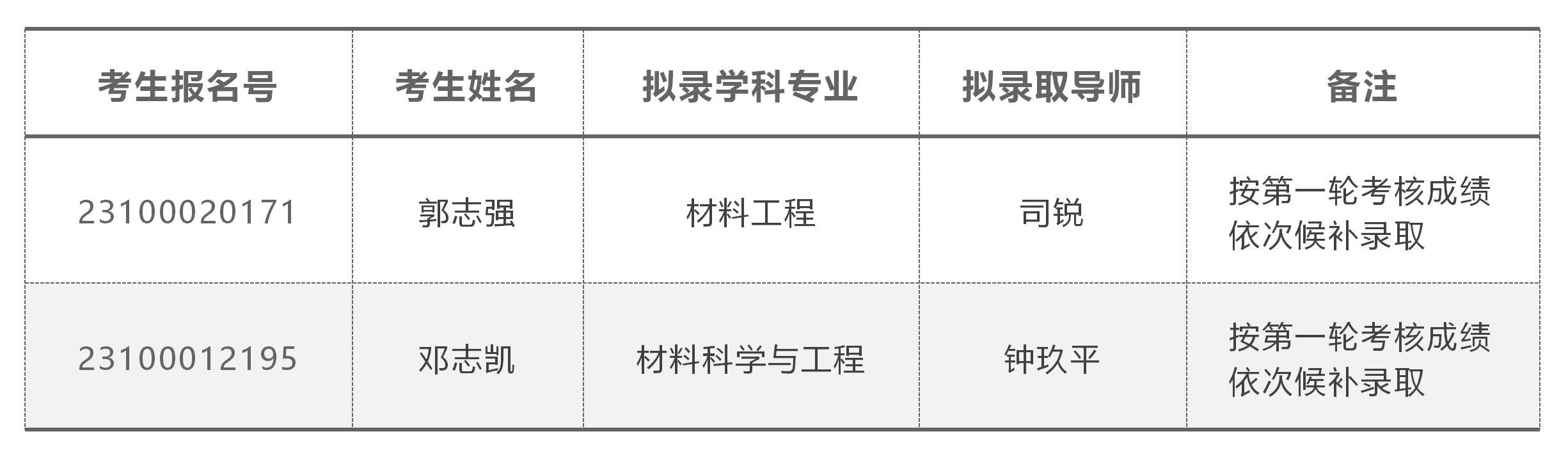 (2)递补拟录取名单